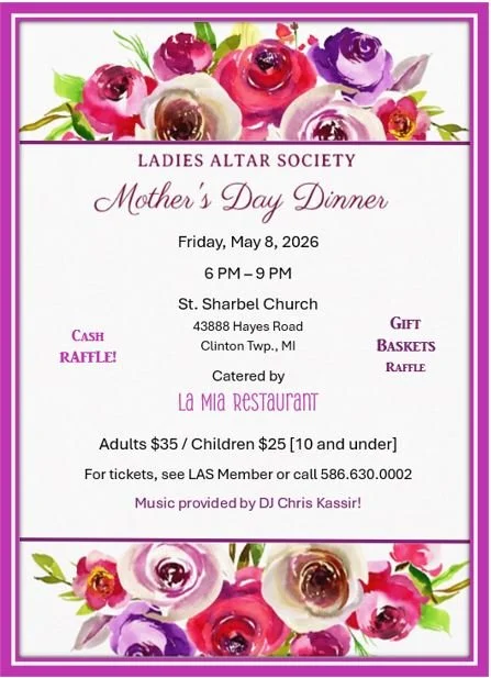 RSVP by email to stsharbelmichigan@gmail.com or call 586-630-0002